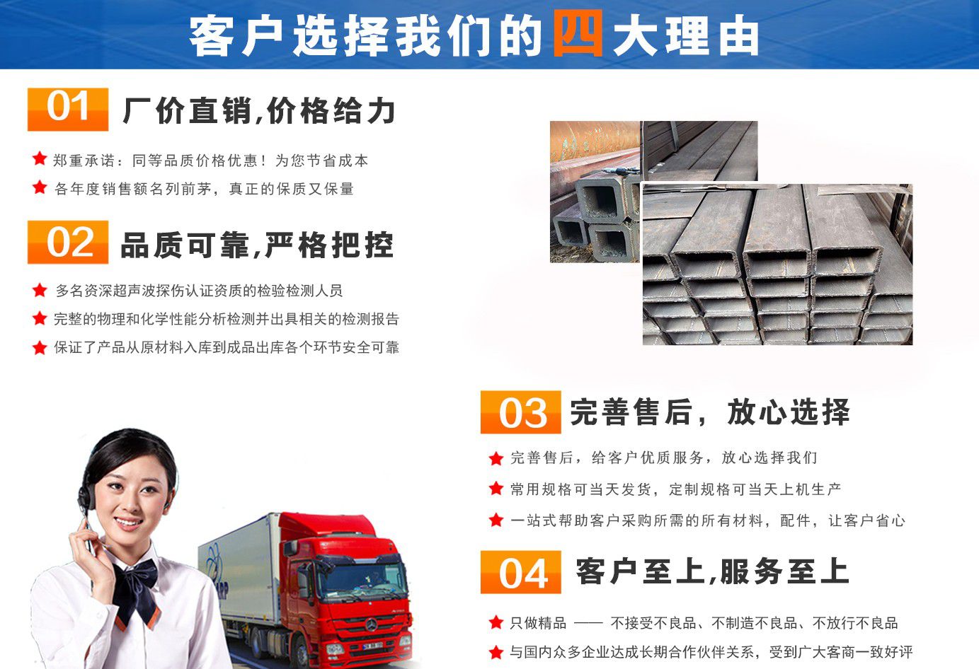 無錫盛灝特鋼有限公司長期銷售Q355B方矩管,鍍鋅方矩管,大口徑方矩管,厚壁方矩管,無縫方矩管等各種方管產(chǎn)品!產(chǎn)品廣泛應用于鋼結構建筑(鋼管混凝土、管樁、管桁架,橋梁、海上作業(yè)平臺、港口碼頭建設、電視通訊鐵塔、電力鐵塔等鋼結構管)。壓力管道(石油、天然氣、煤漿等輸送)、機械制輥等領域。  公司自創(chuàng)辦以來,一直堅持“誠信合作,共同發(fā)展”的經(jīng)營理念。  一直以來我們本著“以誠相待,以信為本,互利互惠,共同發(fā)展”的長期方針,充分發(fā)揮現(xiàn)貨資源優(yōu)勢為您提供“可靠的產(chǎn)品、過硬的質量、完善的服務”,歡迎廣大新老客戶前來洽談業(yè)務。  公司以“至誠至信,雙利雙贏”為根本宗旨,堅持科技興企的發(fā)展策略,恪守商規(guī),創(chuàng)新進去,贏得聲譽,贏得了市場,得到了社會各階層的認可。公司以雄厚的實力、可靠的質量、儲存鋼管門類齊全、庫存量大之優(yōu)勢,本著守法、守信、創(chuàng)新的理念,打造精品,發(fā)展鋼管多元化品種,滿足客戶各種需求,以低廉的價格、熱情的服務面向國內外客戶,歡迎鋼管界同仁加盟!我們?yōu)榭蛻籼峁┲艿降姆?!  公司為客戶提供以下服務  服務三保: 保證質量、保證時間、保證數(shù)量。  服務宗旨: 雄厚的實力、優(yōu)質的產(chǎn)品、低廉的價格、周到的服務。  批零兼營,一支起定。...